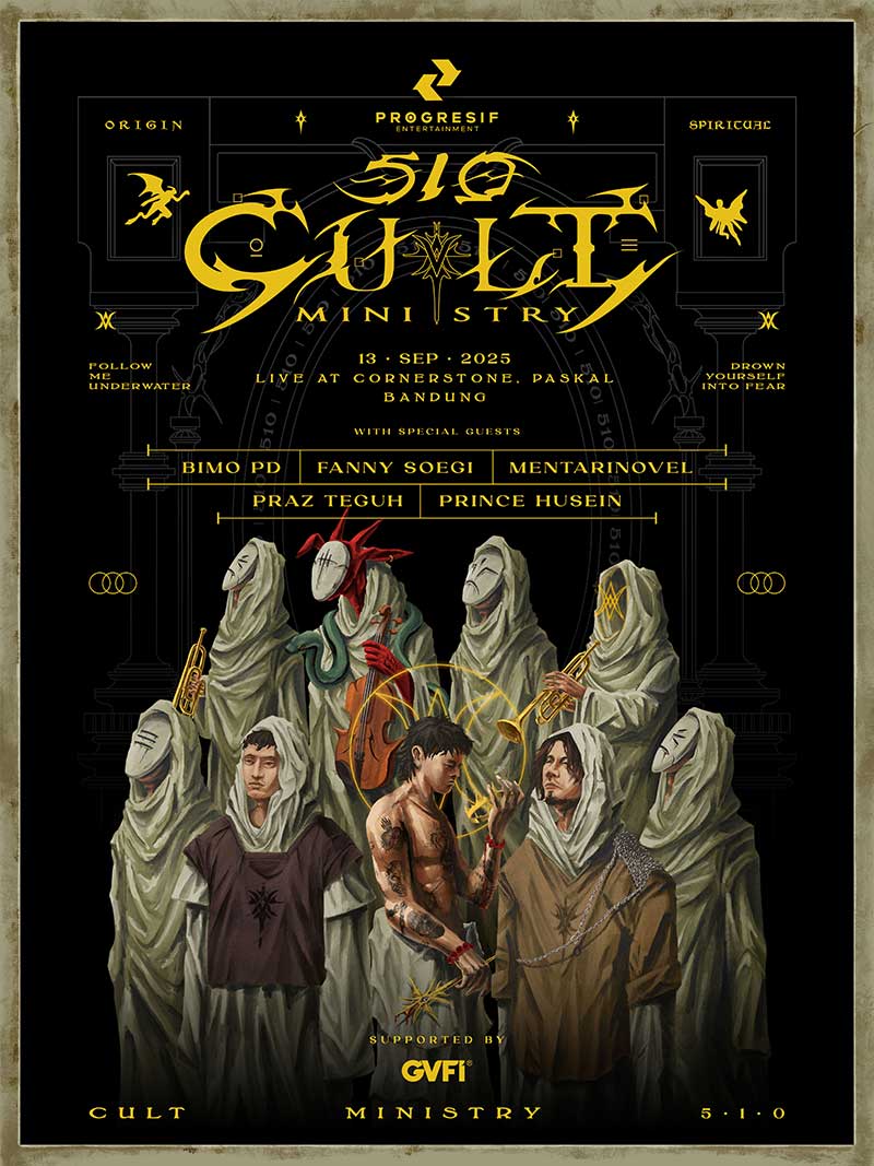 “Selamat datang di belantara, jiwa yang mendendam”. Kalimat itu menjadi pembuka bagi para penggemar 510 yang sudah akrab dengan energi dan atmosfer band ini. Lewat lagu “Ritual” yang menjadi tajuk EP terbaru mereka, 510 kini membawa pengalaman itu ke level berbeda melalui konser tunggal perdana bertajuk “510 Cult Ministry”, sebuah kolaborasi antara 510 dan Progresif Entertainment.